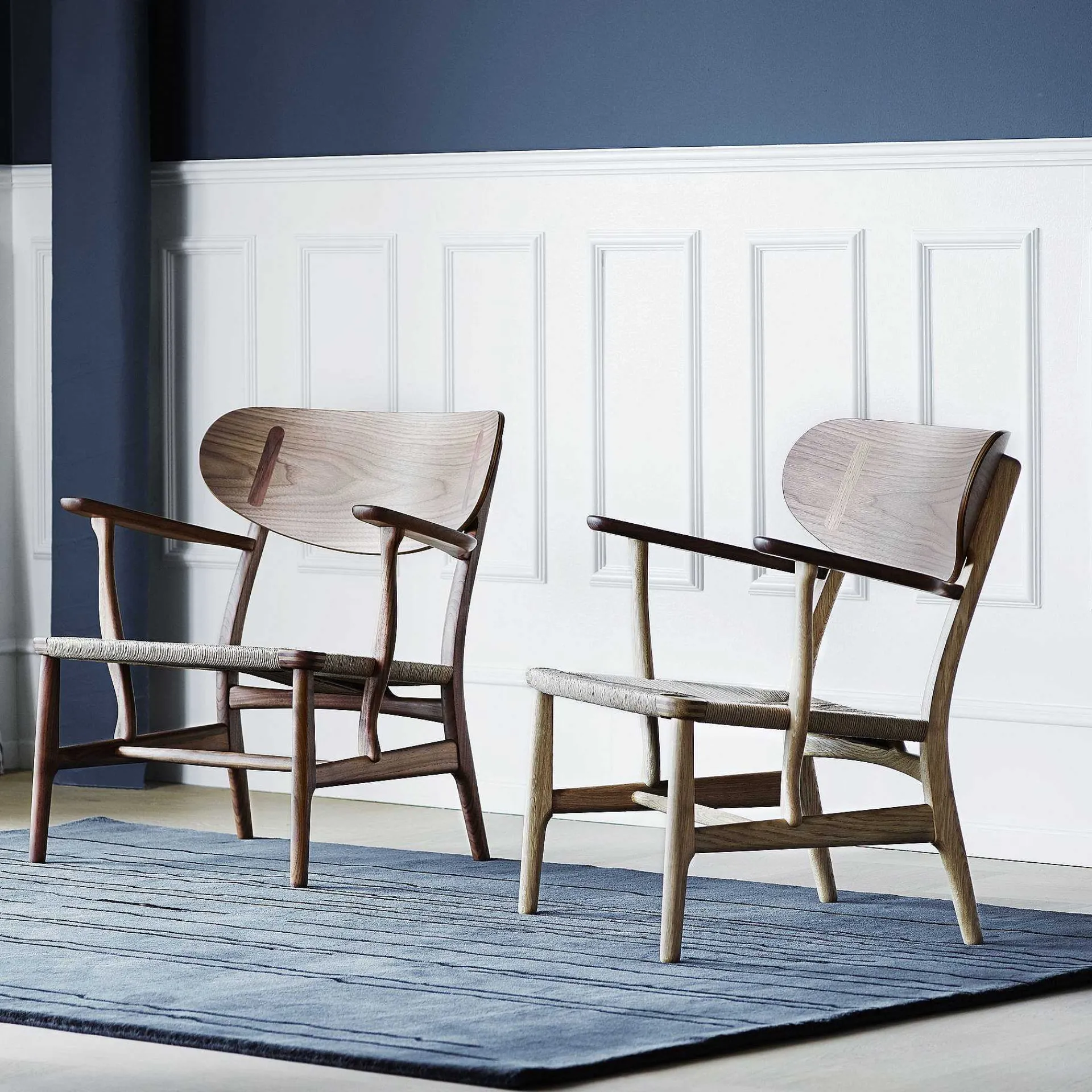 Ch22 Is Hans Wegner’S Masterpiece That Has Become A Cult Of Modern Danish Design And One Of The Designer’S Best Known And Most Sought-After Projects. The Armchair, Produced Since 1950, Was Part Of Hans J. Wegner’S Debut Collection For Carl Hansen. This Low Armchair Is Made Of Solid Wood And Features A Veneered Back With A Characteristic Curved Ergonomic Shape. It Has A Simple And Essential Design, The Result Of High Quality Craftsmanship And Underlined By The Presence Of The Seat Woven With Rope. Today, While Some Parts Of The Manufacturing Process Have Been Modernized, The Chair Is Still Produced With Excellent Handwork, From Assembly To Surface Treatment And Seat Weaving. The Ch22 Has Excellent Ergonomics, A Sturdy Construction And Characteristic Shaped Elements, Which Result In A Unique Appearance That Expresses The Extent To Which Every Detail Has Been Thought Of. It Is Available In Solid Oak And Walnut, With Various Finishes.