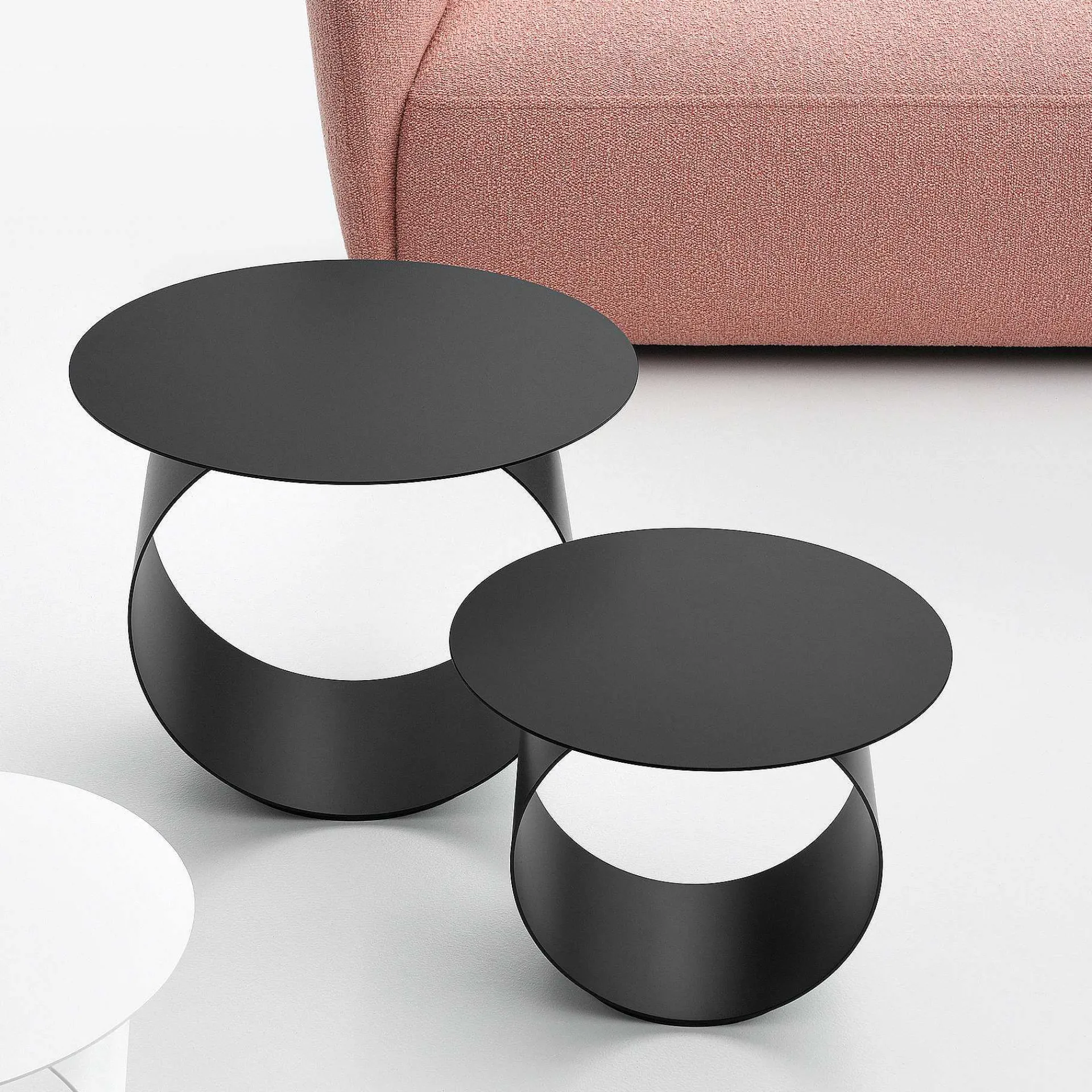 With The Metodo Coffee Table, Designer Leonardo Talarico Introduces A New Concept Of Coffee Table, Creating An Extremely Original Design. Designed Following A Rigorous Stylistic Scheme, It Has A Circular Shape Characterised By Two Circles Which, Placed On Different Planes, Meet To Create Both The Table Top And The Base. The Result Is A Pure And Essential Product With Clean, Precise Lines And A Strong Personality. Made Of Matt Painted Steel, Metodo, With Its Unmistakable Silhouette, Fits Perfectly Into Contemporary Living Spaces: From The Living Room As A Coffee Table Next To The Sofa, To The Bedroom Area As A Modern Bedside Table.