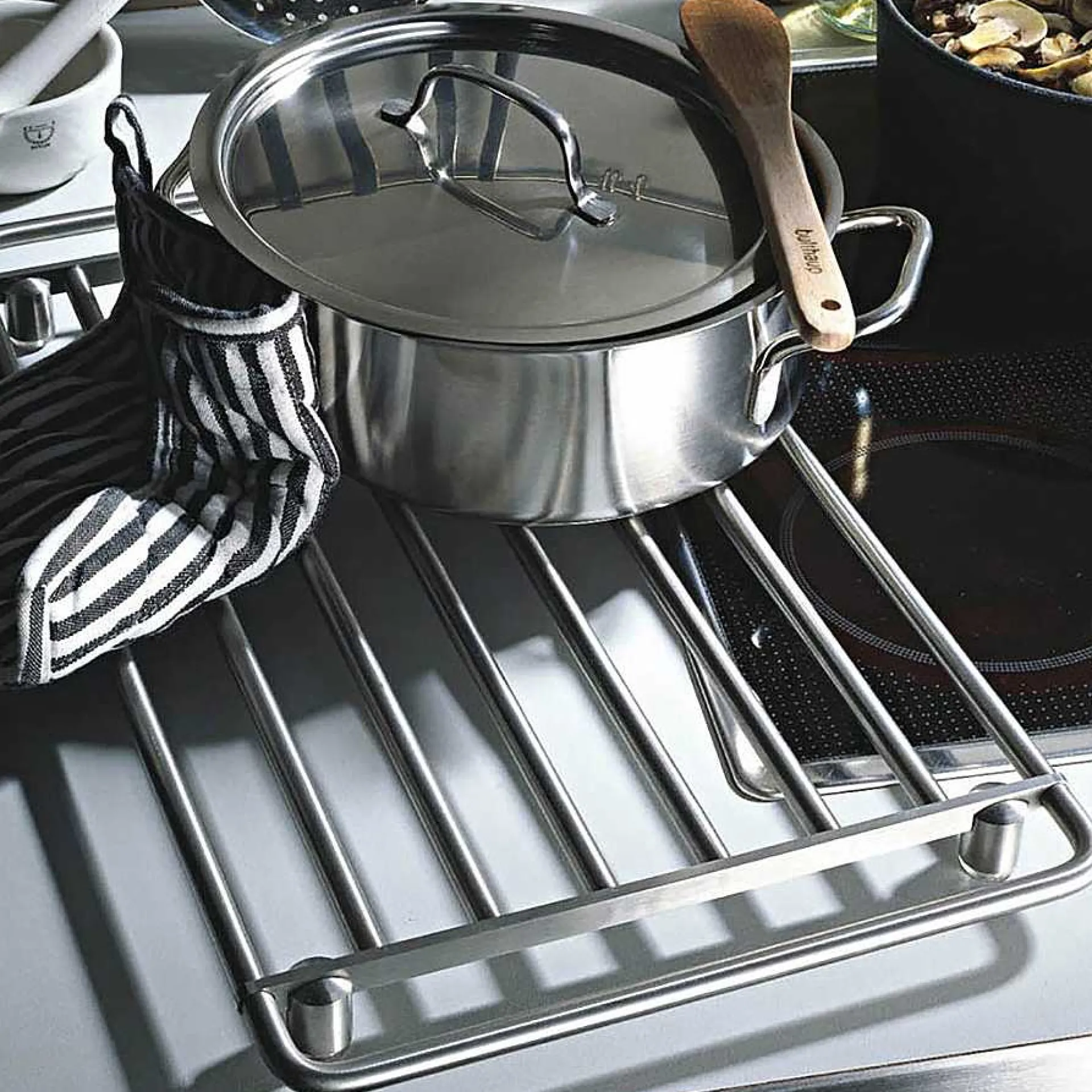 Bulthaup’S Collection Of Kitchen Accessories Fits Into Any Environment With Its Simple Minimal Line. Made Of Durable Stainless Steel, The Pan Holder Is The Ideal Size For Every Size Of Pot And Pan. Equipped With Non-Slip Feet On The Underside Of The Grill, It Provides A Comfortable Grip On Both Sides Which Makes It Also Suitable For Serving At The Table. The Trivet Grill With Aluminum Support Surface And Side Handles Is Also Suitable For Serving At The Table.