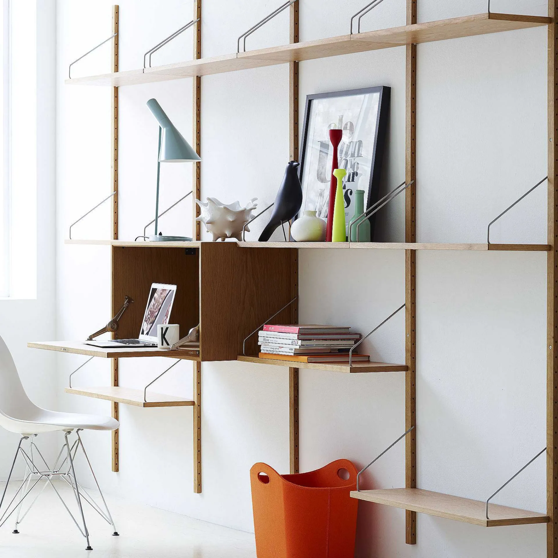 The Royal System Wall-Mounted Shelving System Was Designed In 1948 By Legendary Danish Designer And Manufacturer Poul Cadovius. The Innovative Project Was One Of The First To Provide For The Use Of The Piece Of Furniture Suspended From The Ground, Which Would Only Occupy The Space Of The Wall. Royal System Is Produced In The Dk3 Factory In Denmark And Is Considered One Of The Greatest Hits In The History Of Danish Furniture. It Has A Light And Versatile Style That Adapts To Every Need Defining It A Timeless Classic. It Consists Of A Series Of Wooden Rails, Shelves With Brass Or Stainless Steel Hooks, And Various Modules Such As Cabinets, Drawers And Desks, Which Can Be Combined In Multiple And Customized Configurations. Poul Cadovius Claimed That The Cabinet Could Be Combined In 16 Million Different Ways. There Have Been Many Attempts To Copy The Iconic Furniture Design, But Royal System Always Remains The Original. Contact Us For More Information, For A Quote Based On Your Needs Or For Personalized Advice.