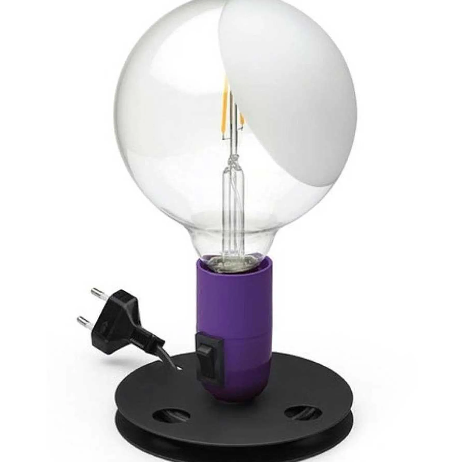 Lampadina Is One Of The Lamps That Have Made The History Of Italian Industrial Design. Designed By Achille Castiglioni For Flos In 1972, Lampadina Is A Direct / Diffused Light Table Lamp With Anodized Aluminum Base, Bakelite Bulb Holder And Partially Sandblasted Transparent Glass Lamp On One Side Of The Sphere. Castiglioni With This Lamp Gives Us A Mix Of Simplicity, Irony And Lightness. The Base Also Has The Function Of Rewinding The Electric Cable. The On / Off Function Takes Place By Means Of A Switch Located On The Lamp Support, Which Can Be Operated From The Outside.