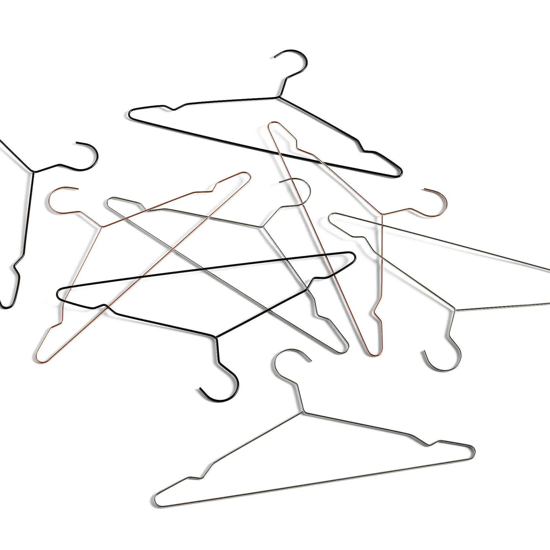 Set Of Coat Hangers With Metallic Finish. The Slim And Minimal Profile Of The Hanger Allows You To Save Space In Your Wardrobe. The Set Contains Five Hangers.
