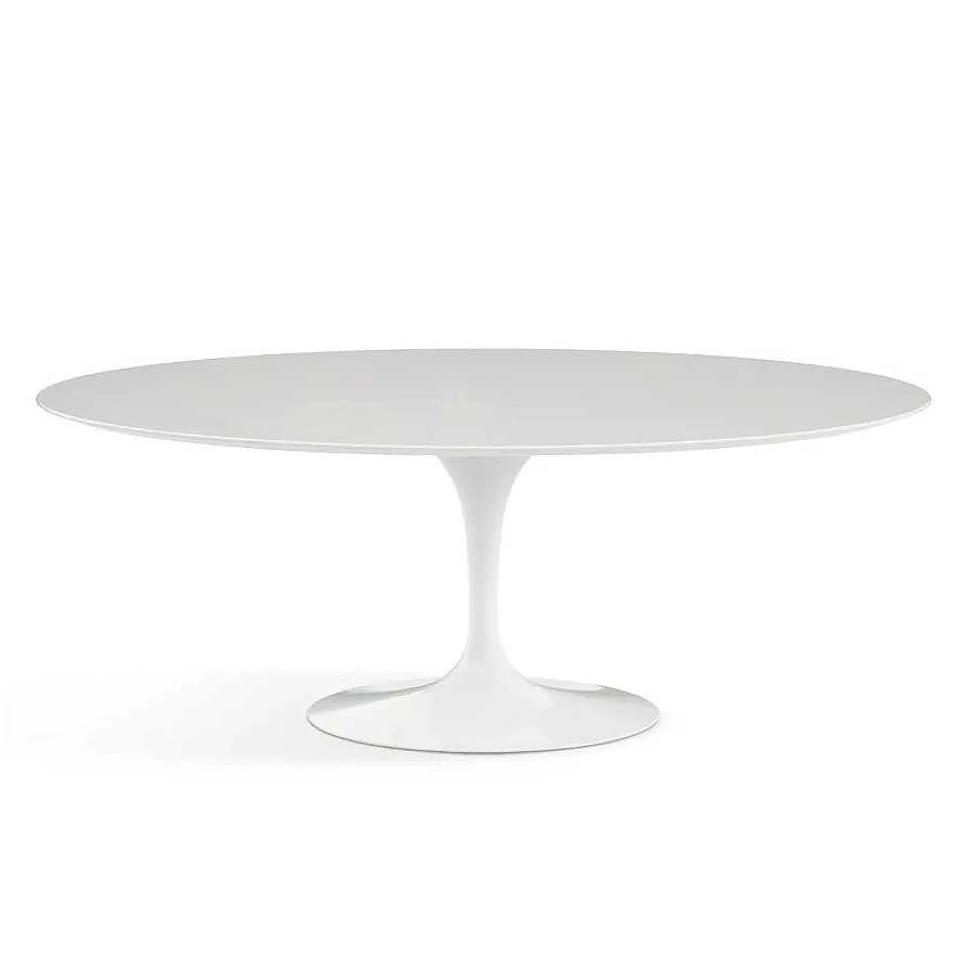 The Tulip Table Is Part Of The Pedestal Collection Designed By The Internationally Renowned Architect Eero Saarinen. A Revolutionary Table In Form And Materials, Today An Icon Of Modern Design. Its Shape Resembles The Stem Of A Tulip, Which Opens In The Final Part To Support The Corolla, In This Case The Top. Innovative Not Only In The Shape With Pure And Essential Lines, But Also In The Materials. The Circular Base Was In Fact Made Of Die-Cast Aluminum As, With The Technologies Of The Time, The Plastic Was Not Strong Enough To Withstand The Weight. The Central Foot Is Made Of A Single Block Of Aluminum Painted White Or Black, Without Joints, And Supports A Top Of Different Sizes In An Oval Or Round Version. The Elegant Table Fits Into Very Different Furnishing Contexts, Even In Traditional Home Interiors.