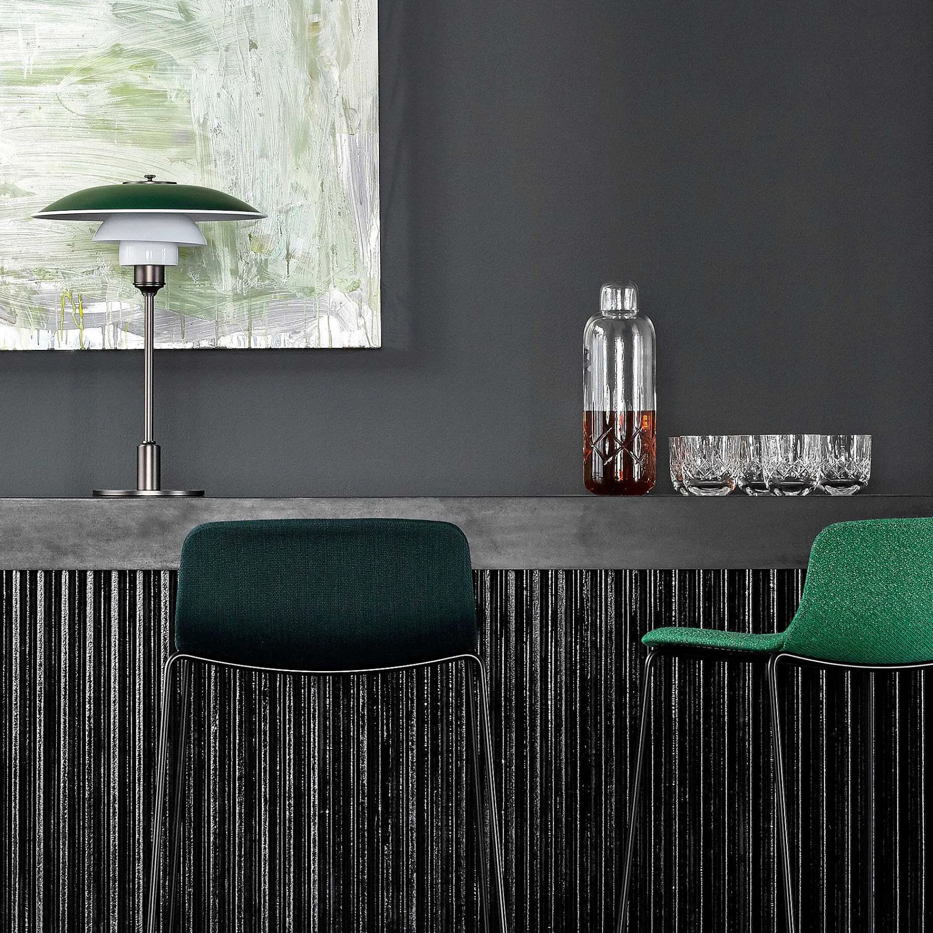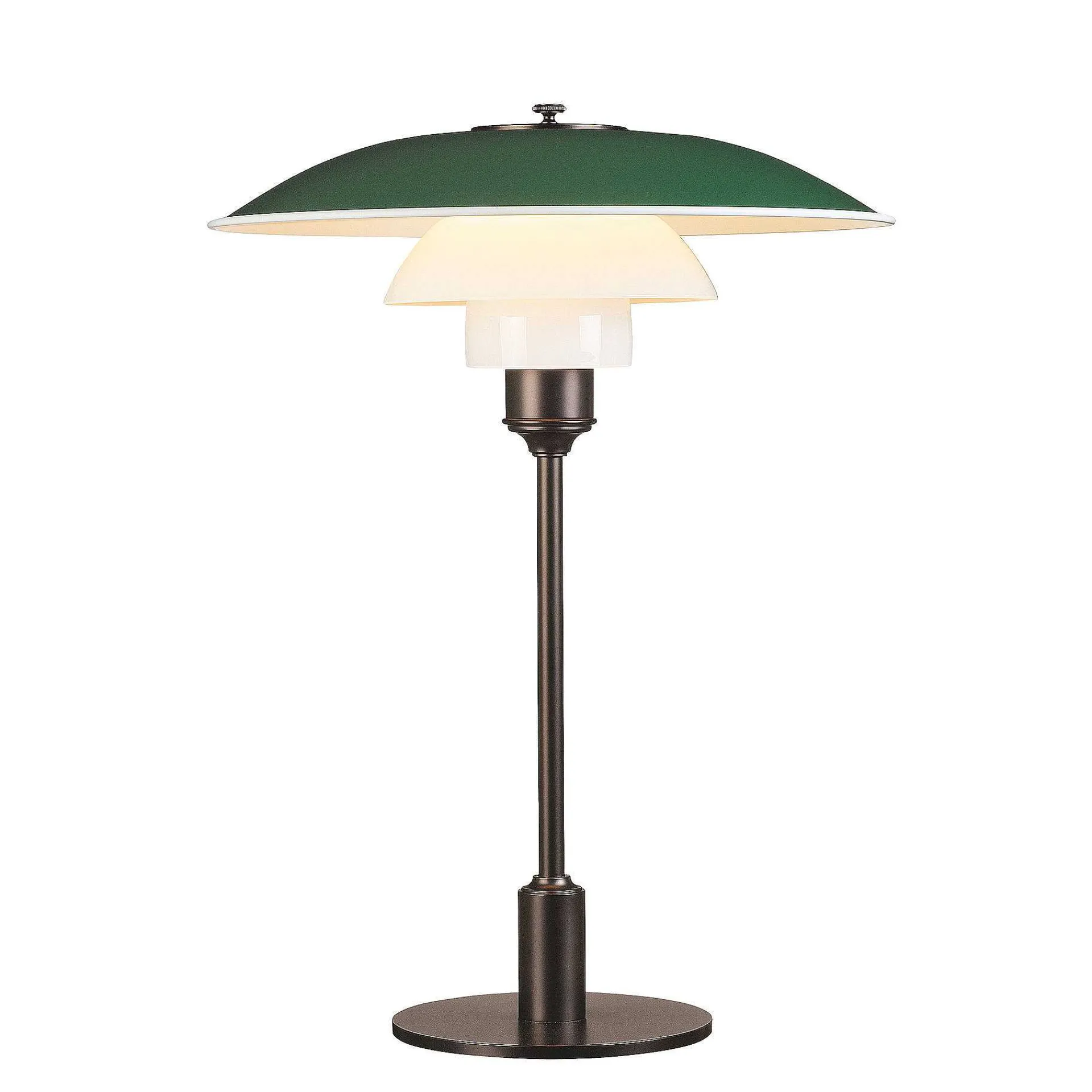 The Ph 3½-2½ Glass Table Lamp Was Originally Designed In 1925 By Poul Henningsen, Who Has Since Been In Permanent Collaboration With The Prestigious Architectural Lighting Manufacturer Louis Poulsen. Poul Henningsen, A Pioneer Of Danish Design, Is Renowned Around The World For His Innovative And Radical Approach. The Lamp Represents One Of The Major Development Projects Undertaken By Its Designer, With A Reflective Three-Screen System That Directs Most Of The Light Downwards. Ph 3½-2½ Features An Intricate Three-Level Lampshade With Blown Opal Glass Lower Screens That Ensure A Glare-Free Lighting Surface, Offering Functional And Comfortable Lighting. The Screens Are Glossy On The External Surface And Sandblasted Internally With A Matte Finish, In Order To Distribute A Soft And Diffused Light. With Its Metallic Brass Stem In Glossy And Black Finishes, And A Matching Fabric Cable, This Design Classic Lends Impeccable Style To Any Space.