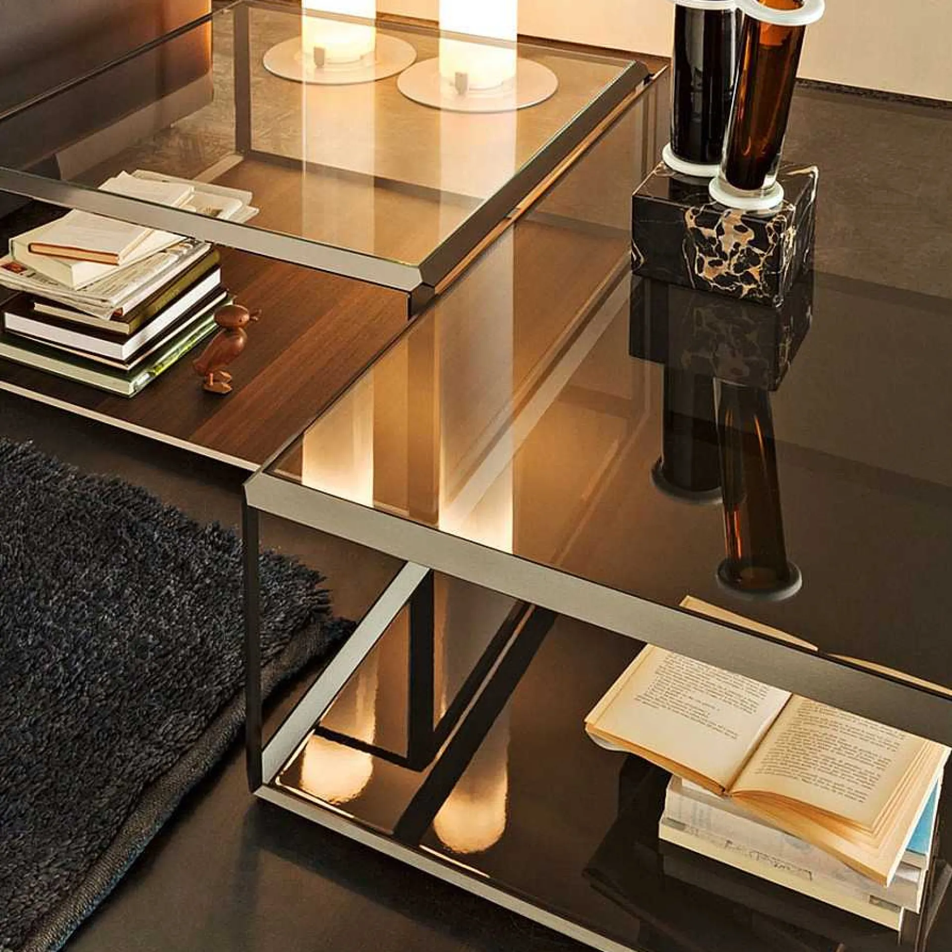 45 ° Is An Open Box Coffee Table Designed By Ron Gilad, Of Which We Only See The Outlines, Which Confirms The Designer’S Interest In Essential Geometric Shapes. With Extra-Clear Transparent Glass Top, Available In Various Sizes, Characterized By Both The Monochrome Walnut Or Black Oak Finish And The Two-Tone Finish. 45 ° Is Rigorous And Playful At The Same Time. Throughout The Collection To Which It Belongs, The Tops Are Rotated And Beveled Creating A Shift That Passes From A 90 ° Angle To A 45 ° One Without Edges. The Shapes Are Wisely Enhanced By The Use Of Primary Colors. An Essential And Elegant Design, The Result Of A Unique Formal Cleanliness. Contact Us For More Information, For A Quote Based On Your Needs Or For Personalized Advice.