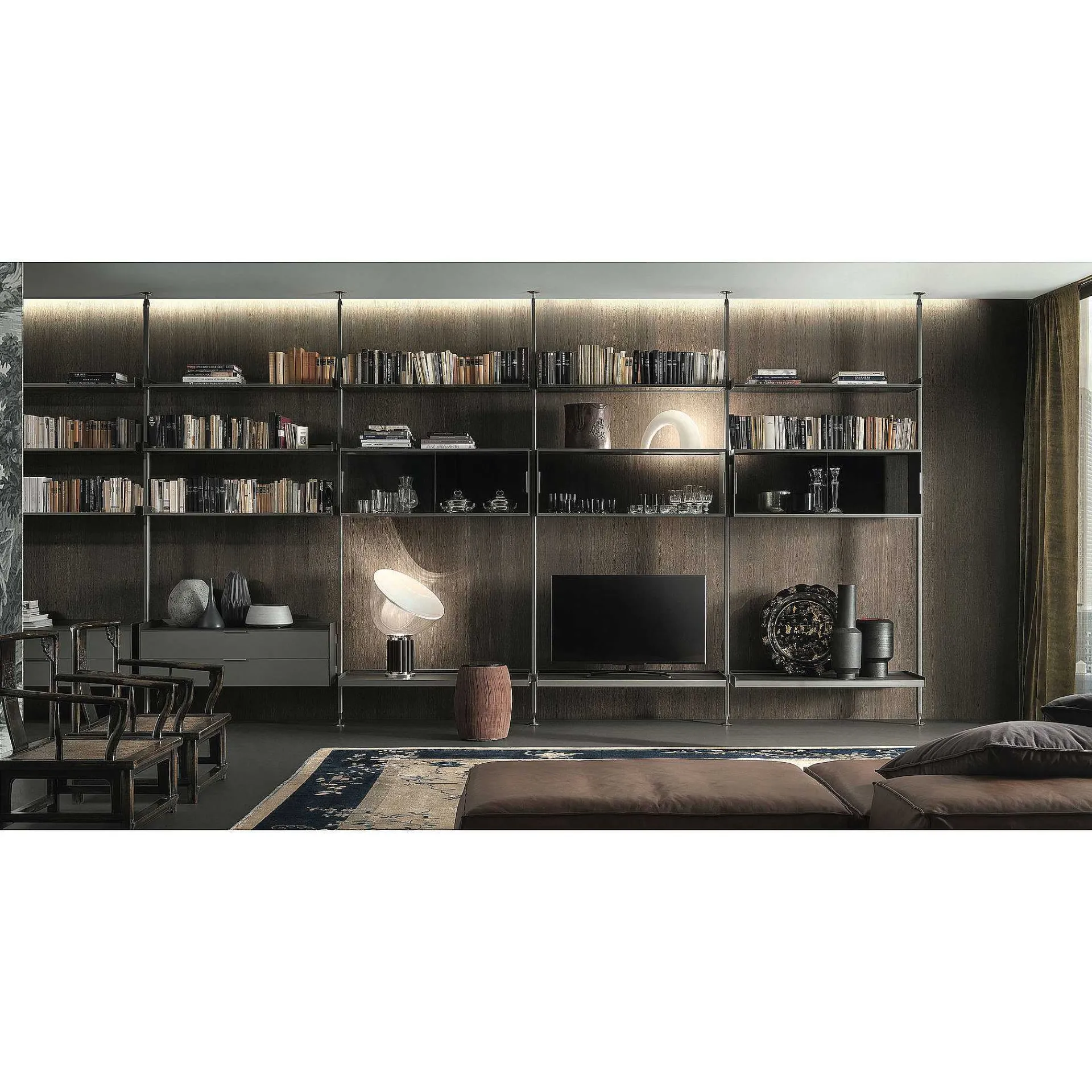 Zenit Is The Innovative Rimadesio Display And Storage System, Designed For Every Area Of The House. A Versatile Bookcase In Which Each Element Can Be Freely Positioned, In The Desired Number And At The Desired Height. It Has A Natural Or Stained Aluminum Structure, With Glass Shelves In Different Variants And Colors, Equipped With Shelves, Shelves And Containers, Shoe Racks, With Sliding Doors Or Drawers. The Main Feature Of The Zenit Project Is The Exclusive Hooking System Of The Elements Obtained Thanks To To An Aluminum Upright Without Holes Or Prefixed Hooks, Which Guarantees An Extremely Modern Formal Cleanliness. This System Allows An Easy And Quick Assembly And The Possibility To Change The Compositions Over Time. For More Information And A Personalized Advice, Please Contact Us Or Request A Quote.